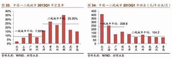 市区供应紧张,市郊备受青睐:北京写字楼市场空置率降至2.6%,租金409.40元l平方米,高出全国平均70%。北京的写字楼租金高企主要源于近三年新增供应量非常少,北京租金上涨压力较大,根据世邦魏理仕研究,北京近期租赁市场明显放缓,受全球经济放缓影响,部分租户已开始着手于成本控制。市场陆续出现晚交租金、缩减办公面积,提前解约的情况。