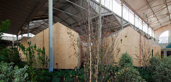 建筑师使用沙袋来填充录音室的墙壁和盆栽植物,方便以后被移植到城市的其他地区。