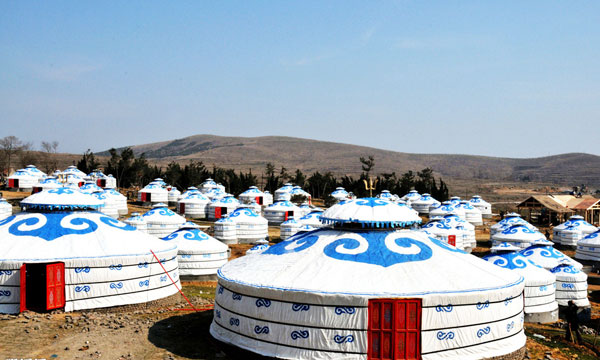 蒙古包(Mongolian Yurts)是蒙古族牧民居住的一种房子,适于牧业生产和游牧生活。蒙古包包内宽敞舒适,是用特制的木架做“哈那”(蒙古包的围栏支撑),用两至三层羊毛毡围裹而成,之后用马鬃或驼毛拧成的绳子捆绑而成,其顶部用“乌耐”作支架并盖有“布乐斯”,以呈天幕状。其圆形尖顶开有天窗“陶脑”,上面盖着四方块的羊毛毡 “乌日何”,可通风、采光,既便于搭建,又便于拆卸移动,适于轮牧走场居住。蒙古包独特的制作技艺,体现了蒙古民族的审美观与高超的技能。蒙古包有着不可替代的观赏价值,同时具有实用价值、艺术价值、经济价值。