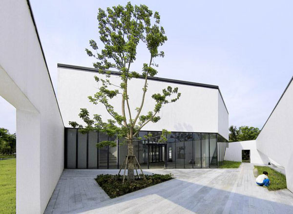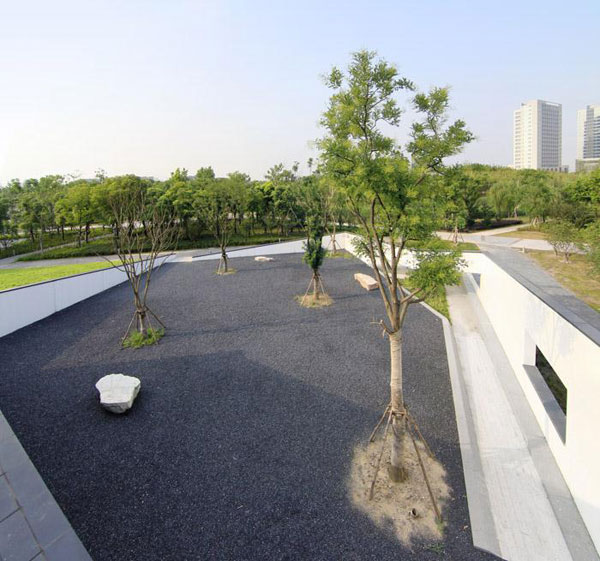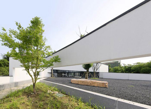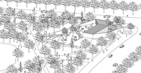 处于城市和公园之间,我们的策略是用院落的方式呈现建筑与城市、建筑与自然的关系。墙语言是策略的执