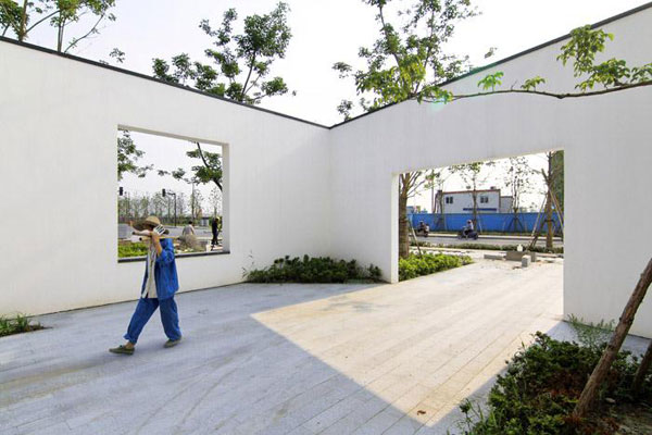 在院落的不同部分,我们通过墙高的连续变化、墙体线路的分合、以及墙上的洞口,营造出多重层次的空间