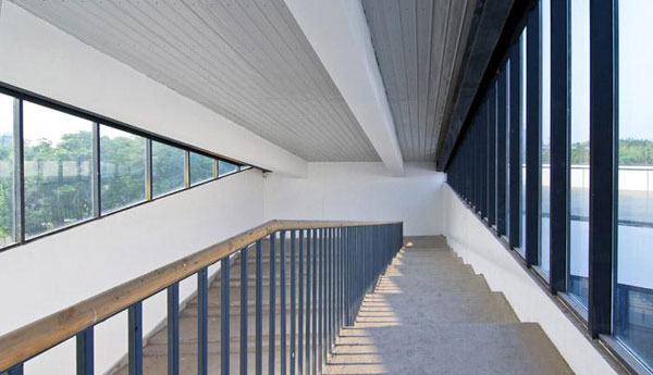 材 料:白色涂料、透明及印刷玻璃、深灰色铝合金、豆石、防腐木