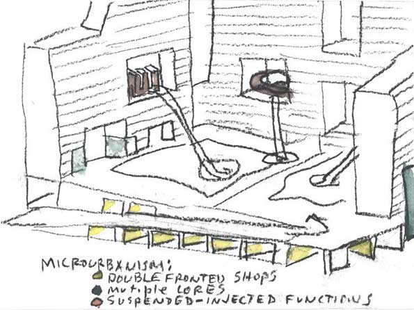 从下面这张图片中可以清晰地看到,与传统商业综合体不同的外向表现不同,他要营造的是一个内向的空间。