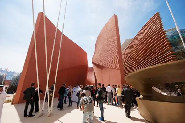 foster + partners事务所的高级执行合伙人兼工作室负责人Gerard Evenden继续补充道,“我们设计的这座国家馆以一种巧妙的方式展现了沙漠式景观和阿联酋的城市规划传统。就其气候和水资源稀缺方面而言,阿联酋现在所经历的就是我们未来所要经历的。因此我们的设计强调在沙漠性气候中如何应对维持生存的挑战,同时展示了如何高效利用被动式节能设备来补给现代城市的能源消耗,维持其可持续发展。如同在上海世博会上参展的阿联酋馆一样,这座建筑将会在米兰世博会结束后被拆除,再在本土上重建。”