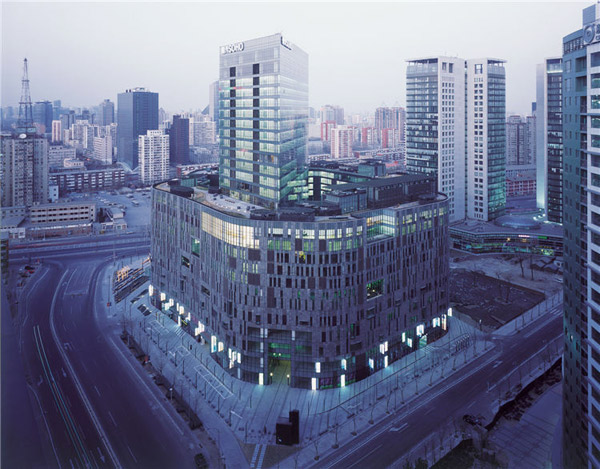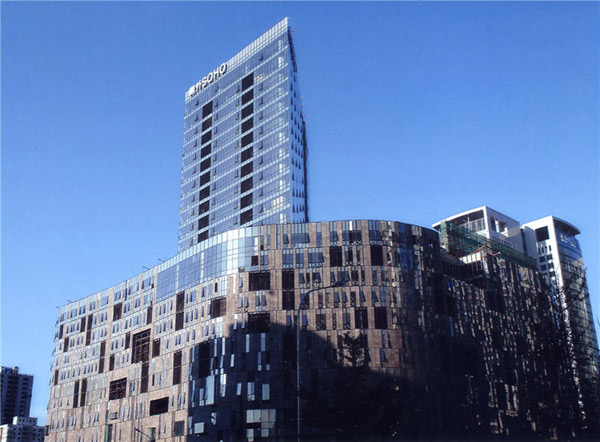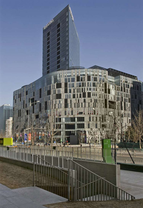 朝外SOHO的建筑外墙材料是深灰色的石材,是北京城的传统色彩,这座置身北京繁华区域的建筑,唤起人们关于北京的深远记忆。历史,现代及未来,在这里交汇,化为一个当代北京CBD中繁华热闹高效的载体。