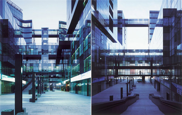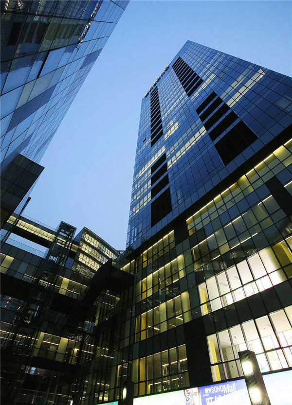 建筑内通过合理有效的分割,在每层商业空间都形成了数条“胡同”,分布于商业空间的大量扶梯、楼梯和观光电梯将各层的“胡同”连成一个有机的整体,形成了一个立体的商业街区。