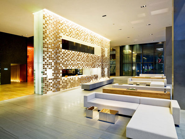 这面墙壁上一个个的小格子其实设计灵感来源于中国古代的药房,这些都是一个个的小抽屉