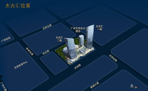 太古汇位于广州天河区,糅合商业和文化元素,并连接市内的地铁线,包括一个大型的购物商场、两幢甲级办公楼、一座文化中心、一间五星级酒店和酒店式住宅,是广州大型综合发展项目的新指标。