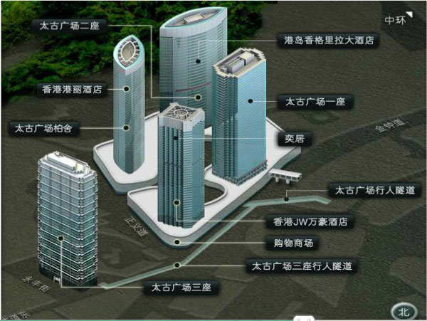 太古广场是一个规模大、质量高的多功能建筑开发项目,在香港中央商务区占据了大约510万平方英尺(47.4万平方米)的建筑面积。广场还连接着金钟地铁站,也可以使用其他各种交通方式到达。
