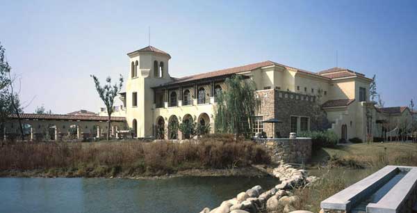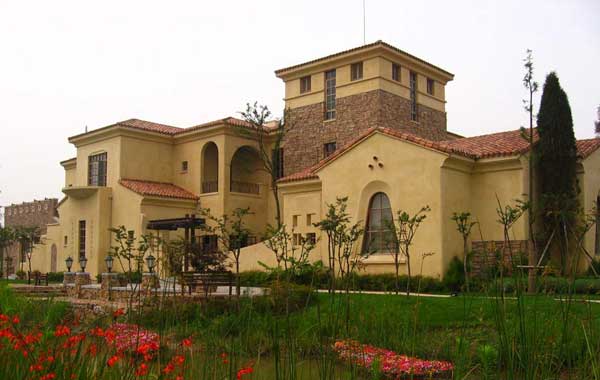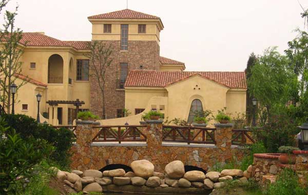 建筑外立面设计采用了美国南加州地区流传的西班牙传教士风格,朴实的建筑、深厚的砖墙、粗犷的材料质感在一派田园风光中相得益彰、浑然天成。