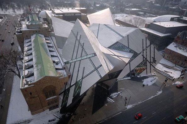 建筑师丹尼尔•里伯斯金(Daniel Libeskind)本人和他高调激进的作品一直都是人们关注的焦点,同样也饱受争议。近来他和加拿大多伦多B+H建筑事务所携手设计了皇家安大略博物馆的扩建部分的建筑。扩建的博物馆以它的捐资人、加拿大华人首富李秦(Michael Lee-Chin)命名――Michael Lee-Chin Crystal。