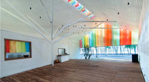 该教堂位于越南胡志明市市郊,是对新型城市病回应的社区空间。由于房地产危机,周边地区缺乏社区活动中心,因此该教堂被设计为人们举行会议、婚礼、展览等活动的地方。教堂充分利用了业主以往项目的材料,像钢架、金属片等。