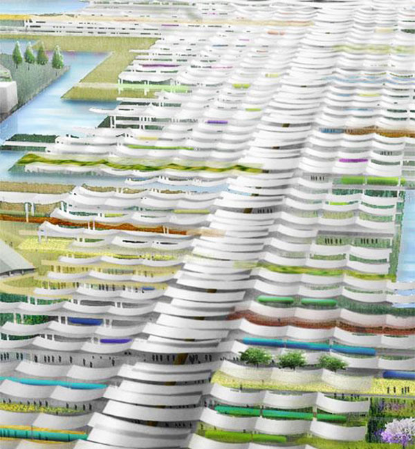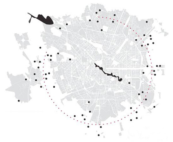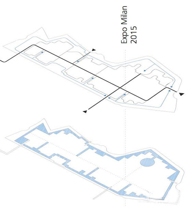 米兰世博会的展区面积将达到110公顷,在一个由人工运河包围的小岛上,根据古罗马的城市规划中提及的形态逻辑,博埃里将基地分割成130个区块,各国展馆以平等的原则坐落在展区一条主要道路左右。其中有6个主展区,一个8000座的圆形露天剧场、12 个餐饮服务区。此外,还有一个大型植物园,以及一个面积相当于米兰圣西罗球场的人工湖泊。这就是未来的米兰世博会,一个被水围绕、蔓延绿色的世博会。这个总体规划图十分契合米兰世博会的主题“哺育地球,为生活添活力”。