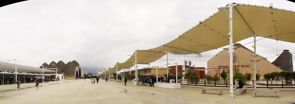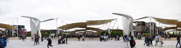 从米兰市中心Doumo乘红线地铁不出三刻钟,就到达世博会西入口所在的RHO Fiera站。想来规划选址时那条与Doumo呼应的历史轴线,对大多数人来讲,也不过是在黑暗的地下呼啸而过。穿过宽敞的站厅爬出地面,世博会小小的售票厅就在眼前,买票安检,再爬过横跨铁路的步行桥,才算真正进入世博园区。