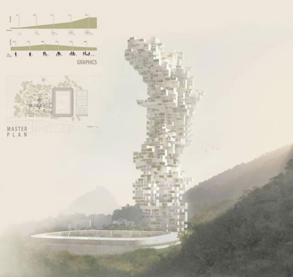 这是一个极具未来感的非正式定居点,这摩天大楼有条不紊的增长模式适用于贫民窟来提高居民的生活水平,并为他们提供一个自我可持续的环境。