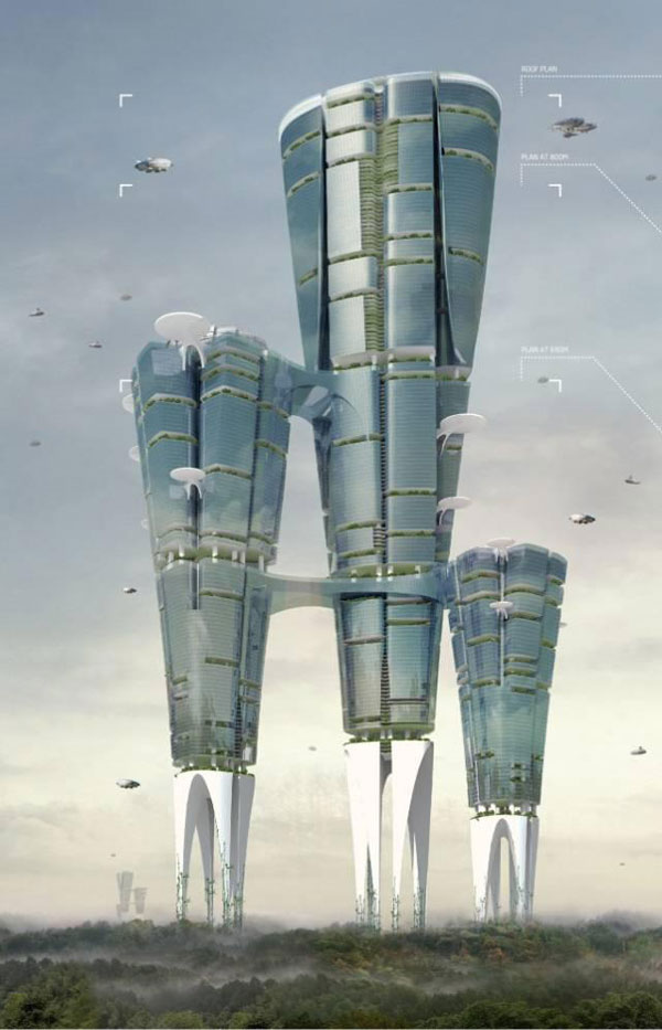 土地解放者大楼旨在对抗中国日益严重的空气污染问题,逐步吸收,垂直转移人口,允许在地面生态再生。