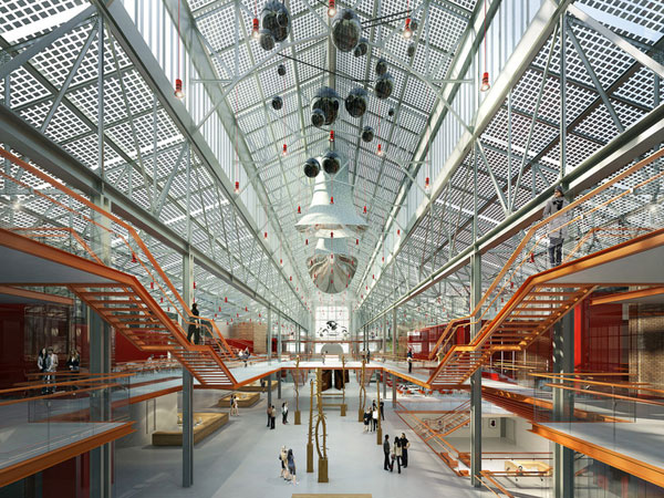 整体设计将被分为三个部分:欢迎接待区、展览区和一个教育授课区。欢迎接待部分将包括一个雕塑花园,桦树公园和室内外广场,除此之外,还配有图书馆、书店、咖啡馆,礼堂,永久和临时的空间艺术装置陈列区。