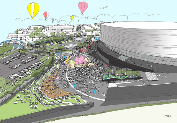 Populous最近连同Feilden Clegg Bradley建筑设计事务所及BuroHappold工程有限公司,提交了他们的新布里斯托尔12000人竞技场设计方案至布里斯托尔城市规划委员会以待批准,并且协商后将于公众见面。该计划将开发并进一步展示竞技场前的空间,可以用于演出,户外电影院,节日狂欢,和跳蚤市场。.