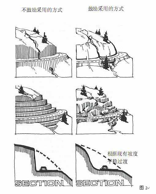 山地建筑应结合地貌特征,依照坡度差异进行建筑布局,起到错落有致的效果,使建筑与山地自然景观相协调,从而避免高切坡现象的建筑形态。