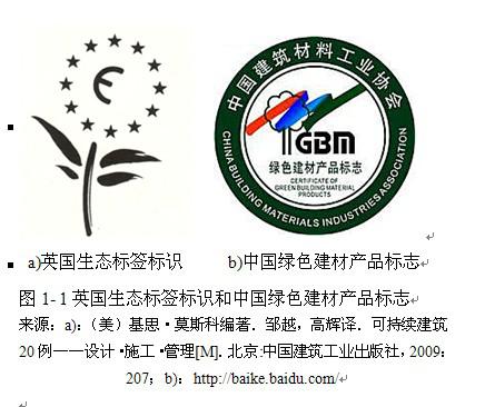 建筑材料的选用如果放在宏观的地球环境而言,材料对环境的影响包括资源消耗、环境污染、能源消耗三大部分,需要考虑材料的采集、生产、运输、施工、使用和处理6个过程。再细分下来,每个过程又包含了一些不同的因素。这个系统记录了材料对环境的影响,是一个完整的材料生命周期。但建筑材料的生命周期评价复杂,需要使用Gabi和Simapro这类电脑软件的辅助,面向的是产品系统,目前正在我国负责建筑材料生产的建材工业企业中进行尝试和推广,市场上也有专门为这些企业提供生命周期评价咨询的环境技术公司。然而,作为建筑师在材料选择时,必须借助政府来制定环境政策与建立环境产品标准,实施生态标志计划,使设计师和采购人员能够简易识别出对环境危害更小的材料,为建筑师预计影响并调整设计提供有力的工具,帮助建筑师制造出对环境友好的建筑。建筑材料的生命周期评价研究,在21世纪初才刚成为个别发达国家的立法活动,如英国。在我国,LCA正处于理论和方法的研究和发展中,还未有独立法定机构负责和标签标识系统。欧共体的生态标签局建立的生态标签是其中一个关于建筑材料的标签标识系统。它对不同工业和加工产品粘贴生态标签,是个自愿体制,建筑产品只是其中一种,而且只有很少的建筑产品纳入了该系统。我国的绿色建材是由中国建材市场协会认证,给企业发放铜牌和绿色建材产品标志,申请该证书的企业需要出据环保性能和物理性能检验报告(图1- 1)。