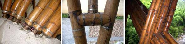 7 | 竹子结构节点构造不牢固 | 以钢、铝为主的金属材料大大提高了结点的精度和牢固程度,以前是绑扎 |