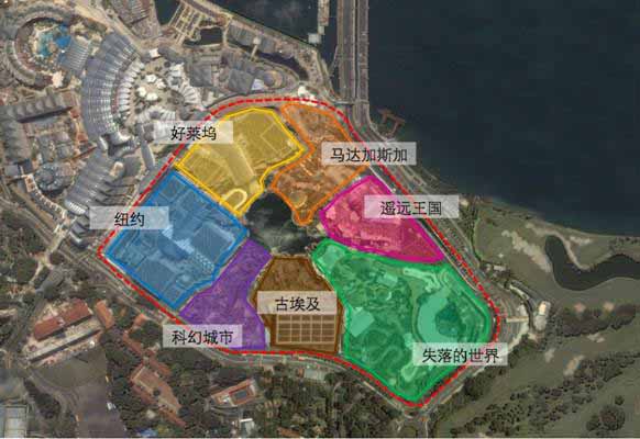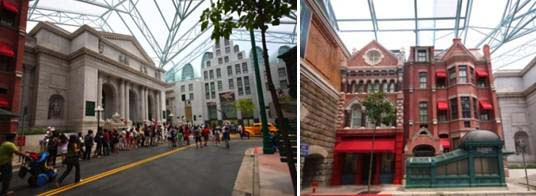 以上为纽约街区采用典型建筑、霓虹灯等形式,组成典型大都会街头风景,为游客营造典型的纽约街头风格。