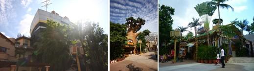 在新加坡环球影城的文化主题营造中,首先伍迪啄木鸟为环球影城吉祥物,公园入口以旋转地球雕塑为公园标志,保持该主题公园品牌的文化延续。其次在公园内划分的七大板块中,每一个板块都有鲜明的主题,如古埃及板块中方尖碑与埃及宫殿、史瑞克遥远王国的城堡、马达加斯加的热带雨林环境等,在建筑外观上各区都表现了与各主题相符的元素和个性,同时各种异想天开的元素搭配,反映了环球影城作为电影虚拟世界的再现主题,为游客营造身如其境的游乐过程。