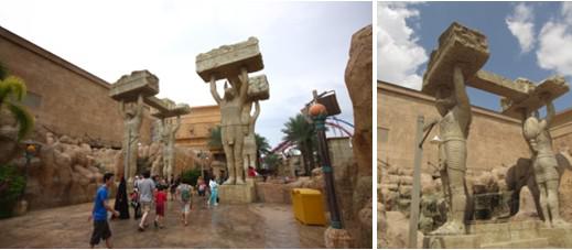 古埃及板块中系列雕塑、残垣断壁等营造氛围