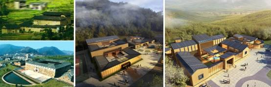 在铜鼓峰旅游度假区项目设计中,围绕客家第一峰的项目主题,设计了以客家围屋为原型的系列建筑设计方案,遵循传统客家建筑“天人合一”的理念,在外观、材料、功能上进行了系列的创新设计,提高传统客家围屋建筑的现代适用性的同时,实现对传统客家文化灵魂的延续。除了以神似为主的主题氛围营造,还有原滋原味的场景重现打造方式,让游客置身其中,如同进入当时的情景。