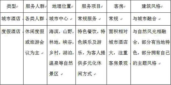 为了能更好的理解度假酒店与传统城市酒店的区别,见下表。