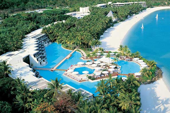 海曼岛度假酒店根据所处位置的环境及地理优势,利用自然海景与酒店内景色相互呼应,场地人工造景与自然景观衔接,自成风格。