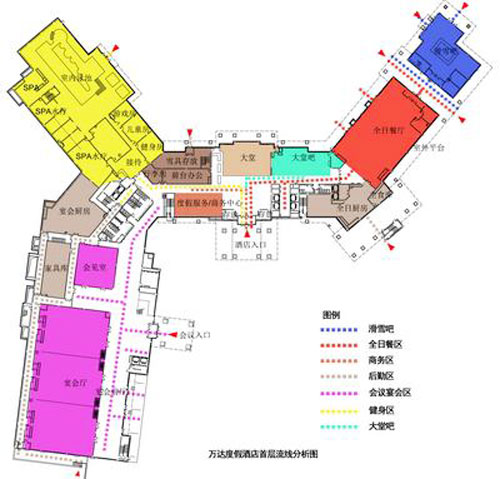 本文结合某万达度假酒店首层平面来一起分析探讨流线的设计特点及注意事项。
