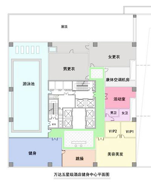 酒店康体中心包含健身房、游泳池、活动室、美容美发室等内容。本文不在此一一论述,着重分析健身房和游泳池的位置关系和面积配比。往往酒店的类型、等级、经营项目不同,使之康体中心配备功能也不同。不符合酒店定位和需求的功能建议不宜硬性设置,避免造成不必要的成本浪费。