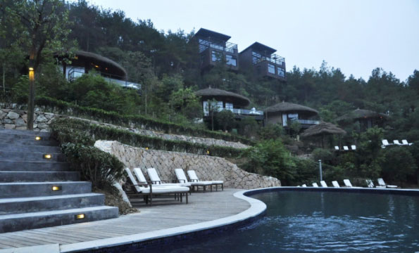 裸心谷,位于浙江省风景秀丽的田园胜地莫干山。这个强调可持续理念的豪华养生中心兼牧马自然保护区占地60英亩,坐落于一个私人山谷之中,四周环绕着大型水库、翠竹、茶林以及一些小村庄。