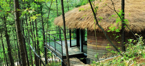 树顶别墅和融合亚非风格的室内设计均出自女主人──建筑师叶凯欣之手。夯土小屋则是由上海本土环保建筑设计师A00 Architects操刀。匠心独运的室内外设计,令秀美的山野景观更显迷人,带来返璞归真的自然体验,同时对环境的影响减至最低。