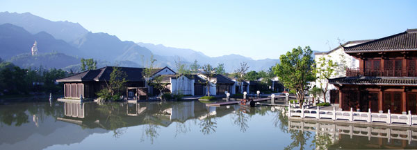 九华山雨润涵月楼度假酒店设计集度假,餐饮,娱乐,休闲,养 生,购物和住宿为一体,秉承皖南地区徽文化历史的文脉,同时依托丰富的九华山自然景观和深厚的佛教文化资源,建立一个拥有自然山水景观的高生活品味的优质 度假场所。