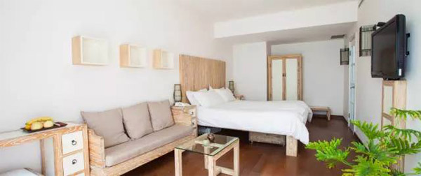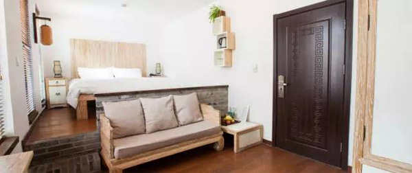 房间内部使用了原木、纯白和浅灰这类自然的色系,让宾客感觉非常舒服。简洁的房间设计不失惊喜,白色和原木的柜子搭配了传统的手拉环,沙发也是根据传统的椅子形态而做成,韵味十足。