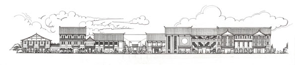 设计理念集中体现在将当地的特色文化遗产巧妙地融合到景观细节之中。细节融合当地生态、文化元素并结合使人们在休闲娱乐度假的同时亦能体会当地特殊的文化韵味及传统情结。结合太昊图腾以凤文化、结合水城特点以鱼文化、桥文化为主,以功能全,全面、充分满足“吃、住、行,游、购、娱”为特色,南区组合全国特色名小吃,到原产地招商,保持原汁原味,保证味道好,以味正、品种新取胜;食品店还有各色地方特产小食品等。