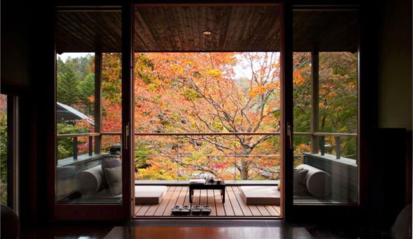 有这样一种建筑,虽然其本身与室内设计俱十分精彩,然而它的存在,似乎是为了成全所在的一片天地,与山水共存,亦令身在其中之人,能随时融身于夏之绚烂,冬之庄严。 Hoshinoya Karuizawa(轻井泽虹夕诺雅),是以珍惜日本原有文化特色为主题的村落温泉度假村。坐落于幽深的山谷之中,保留了日式旅馆设计的种种细节,宛如日本经典文学中所描写的景致。