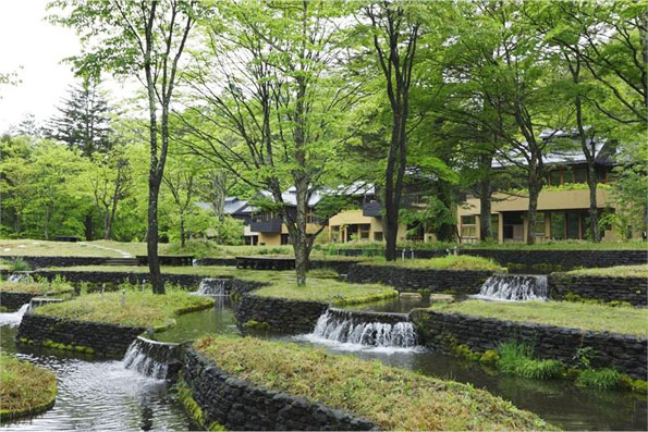 这里野鸟的鸣叫,森林的呼吸,潺潺的溪流,清澈的风,倾泻而下的阳光和温泉的惠赐,在它们的怀抱中,身心都被融汇到自然中。这间酒店由日本著名女建筑设计师操刀设计,整体构思来自来酒店总监星野佳路,美轮美奂的建筑设计出自长谷川浩己。 酒店的前身是星野温泉大饭店,位于穿流在野鸟森林与星野丘陵之间山谷谷底的汤川沿岸,在酒店的正中间有河川,行人由狭桥渡河,经常在感受水和森林气息的同时散步行走时,在小巷尽头会展现新的风景。虽然披着现代简约设计的外壳,但是在细节上尊崇着日本传统文化。