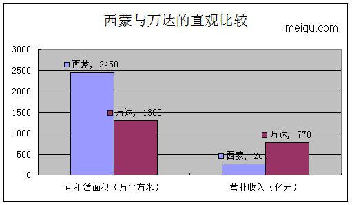 但是从销售收入上来比较,西蒙集团2010年的销售收入合计约39.6亿美元,按当期汇率折算约261亿人民币。而万达集团2010年的销售收入达到770亿人民币。