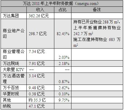 由于缺乏万达集团的公开年度财务数据,我们根据万达2010年上半年的数据对万达的盈利来源进行粗略分析。