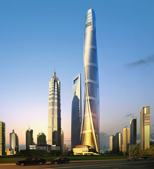 上海中心大厦总高度达632米,预计将在2015年全部完工。 上海中心大厦位于上海浦东新区陆家嘴金融区,与金茂大厦和上海环球金融中心相邻,为一栋多功能的摩天大楼,塔楼结构高度580m,建筑总高度632m。