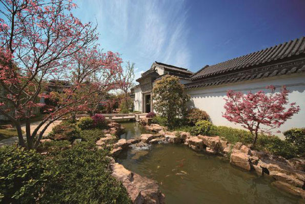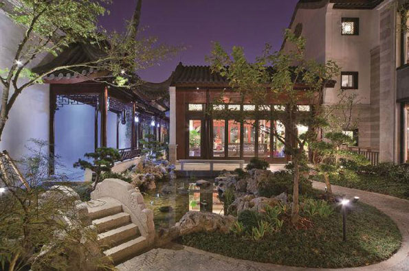 园林:拙政别墅沿袭中国私家园林气脉,在庭院、天井以及路径用石材与砖材铺设成十字海棠、冰格、梅花等寓意吉祥的传统文祥,是“拙政十二景”意境的延伸。