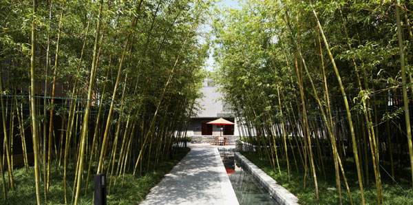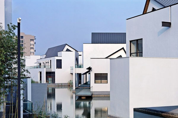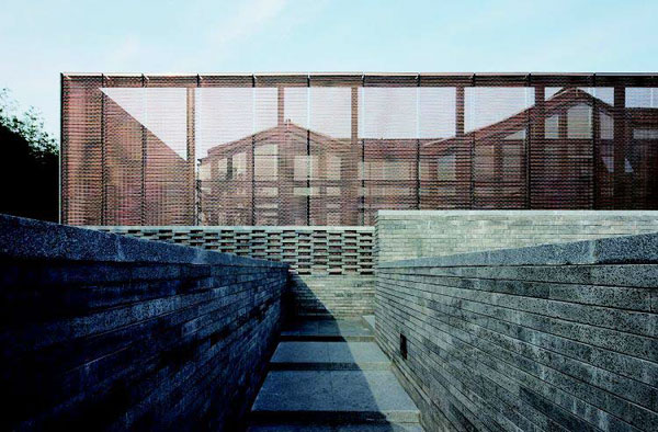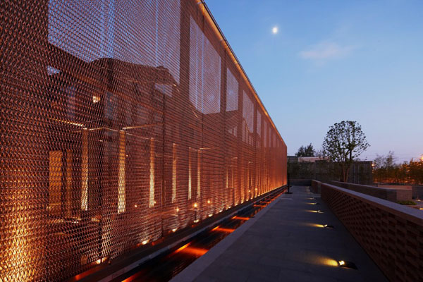 某些连续的折板,墙 内与墙外(“皮”与“瓤”)的灰白色彩不同赋予了建筑现代的外观,但初始目的是为了模糊天地墙的界限,希望可以因此带来简单和意味深长的变化。公共空间的 体验得到了重视,就像意大利古城佛罗伦萨的街道感觉一样,在这里,除了在街巷广场的穿梭可以获得东方层层叠叠递进的体验以外,情趣也是其中的链接线索。
