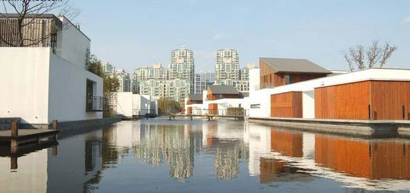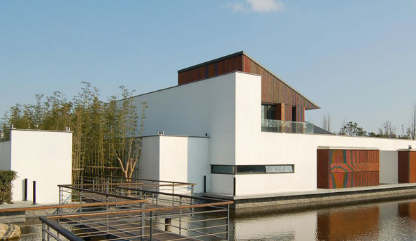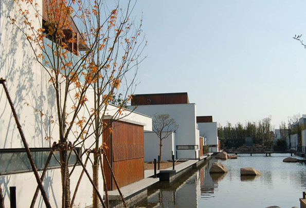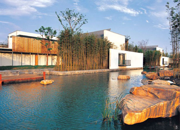 本项目汇集了中外众多知名建筑师参加,如矶碕新、严迅奇、登琨艳等。其中我公司负责总体构思、协调并承担小区中心半岛上的别墅单体设计。