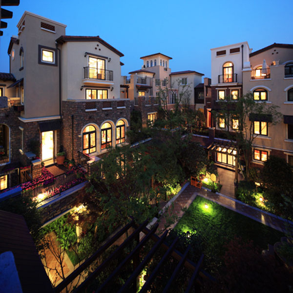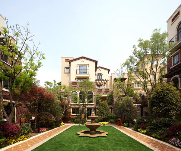 在这个院落里,让孤独的孩子拥有玩伴,让安享晚年的老人拥有朋友。公共和私密是对立的,本案在空间上从内到外依次递阶为内部的居住空间、自家的小花园、中间的景观公共区,有私密空间、半私密空间以及公共空间三个层级。通过空间的过渡,最大限度解决公共和私密的矛盾。建筑立面上采用地中海建筑风格设计,由意大利和西班牙两种风情元素组成。