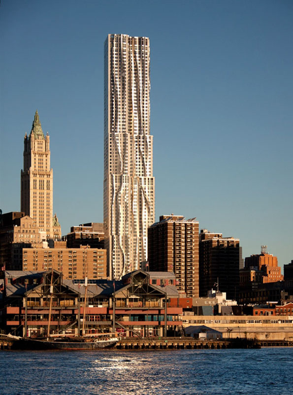 这座极具褶皱感的大厦高870英尺,盖里重新诠释了古典建筑设计语言,用这个独特的设计改变并影响了纽约这座密集大都市的天际线。
