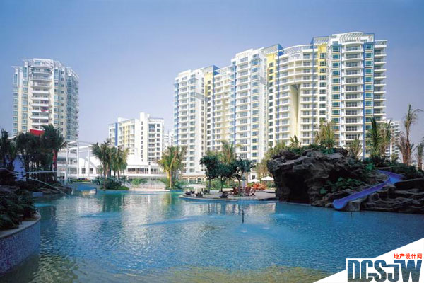 建筑外立面讲求线条简洁、轻巧、色彩明快、清爽。建筑底层全部架空,并以绿荫植物辅以装饰,增加整个小区的通透性。整个小区内,建筑与景观错落有致,层次分明,各种植物全年青葱翠绿,1.7万平方米的中心水体绿化带贯穿整个小区,使整个项目充满灵性和生机,为住户提供一个情趣盎然的休闲生活空间。