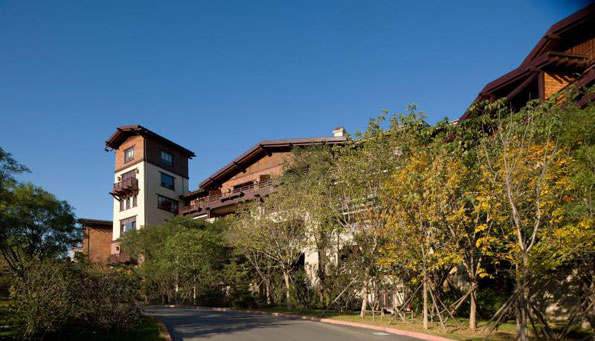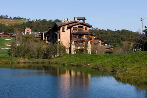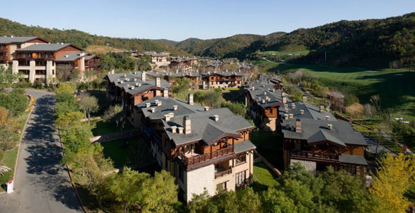因地处山地高尔夫球场核心,地形复杂,周边的高尔夫山景丰富,为了更多的借用美丽的山景,同时不破坏山体,维持山体的原貌,在规划设计中,让建筑依山体的起伏而变化,行走于建筑中,时时刻刻都能享受到高尔夫山景;建筑群体高低错落,让建筑融合在自然中,建筑又成为山景的一部分。为了强化这一效果,建筑风格采用美国CRAFTSMAN风格,运用大量自然材料,尤其是木材——这个自然中最富有感情的材料,建立动人的人与自然的关系。体现未来建筑的发展趋势——自然化。